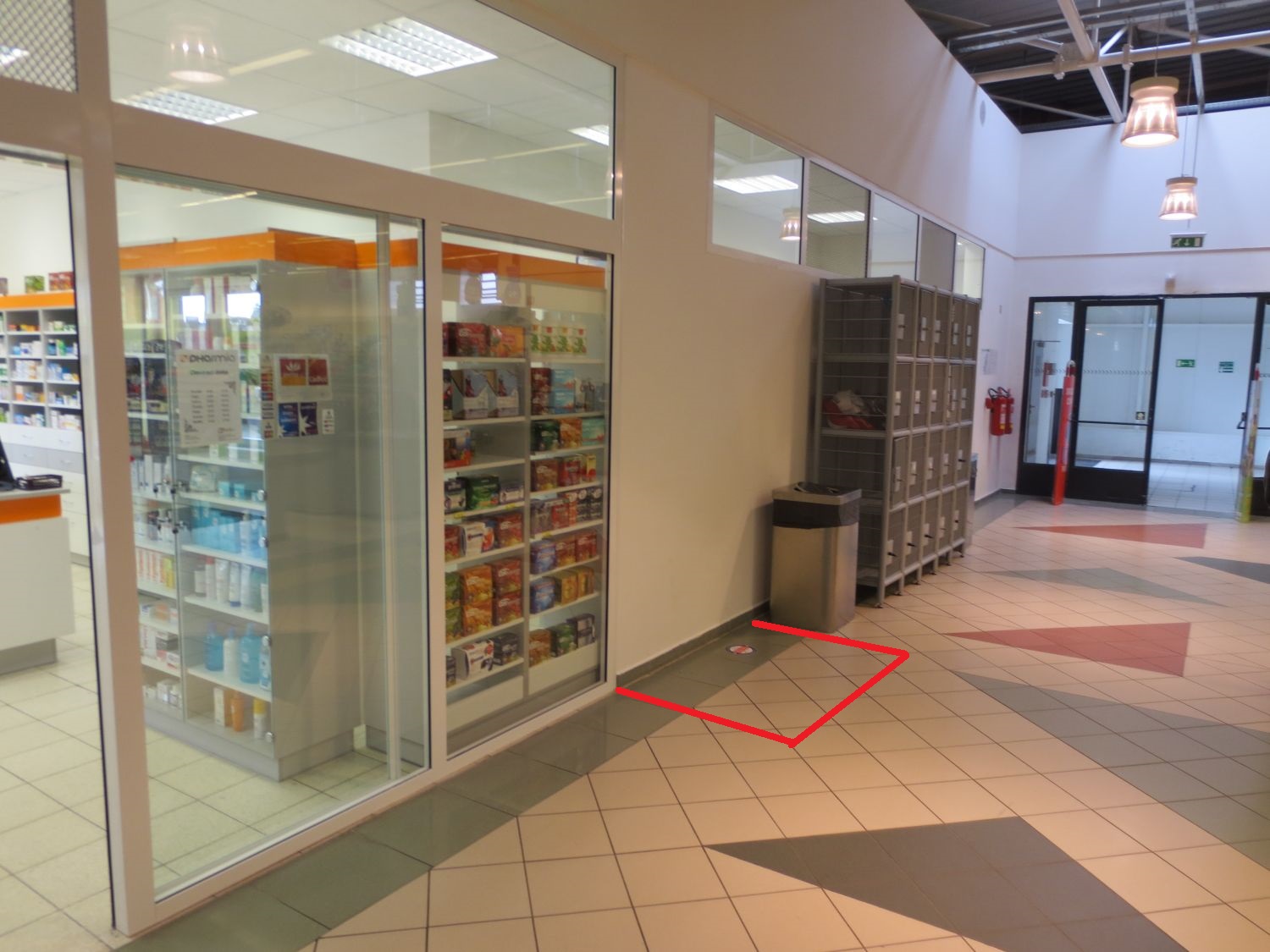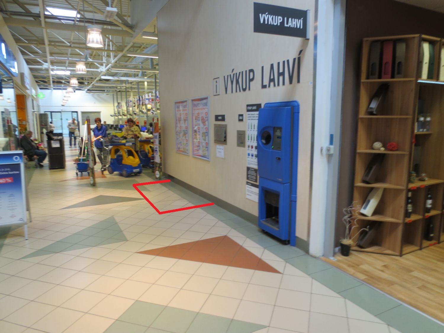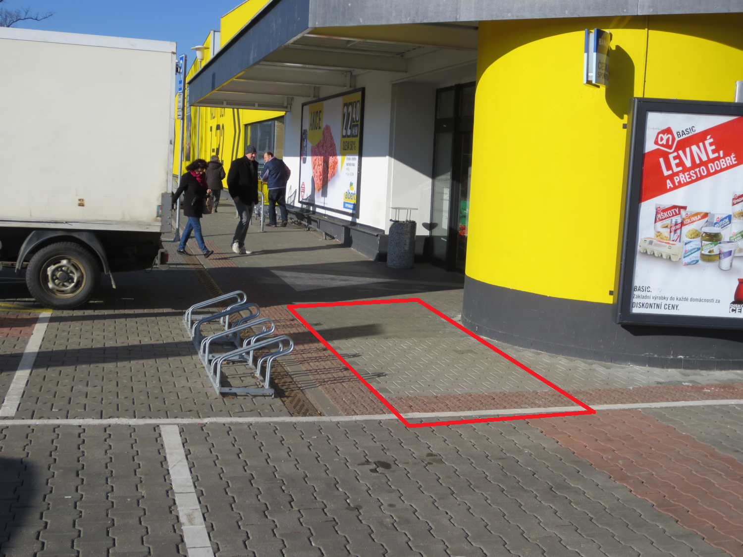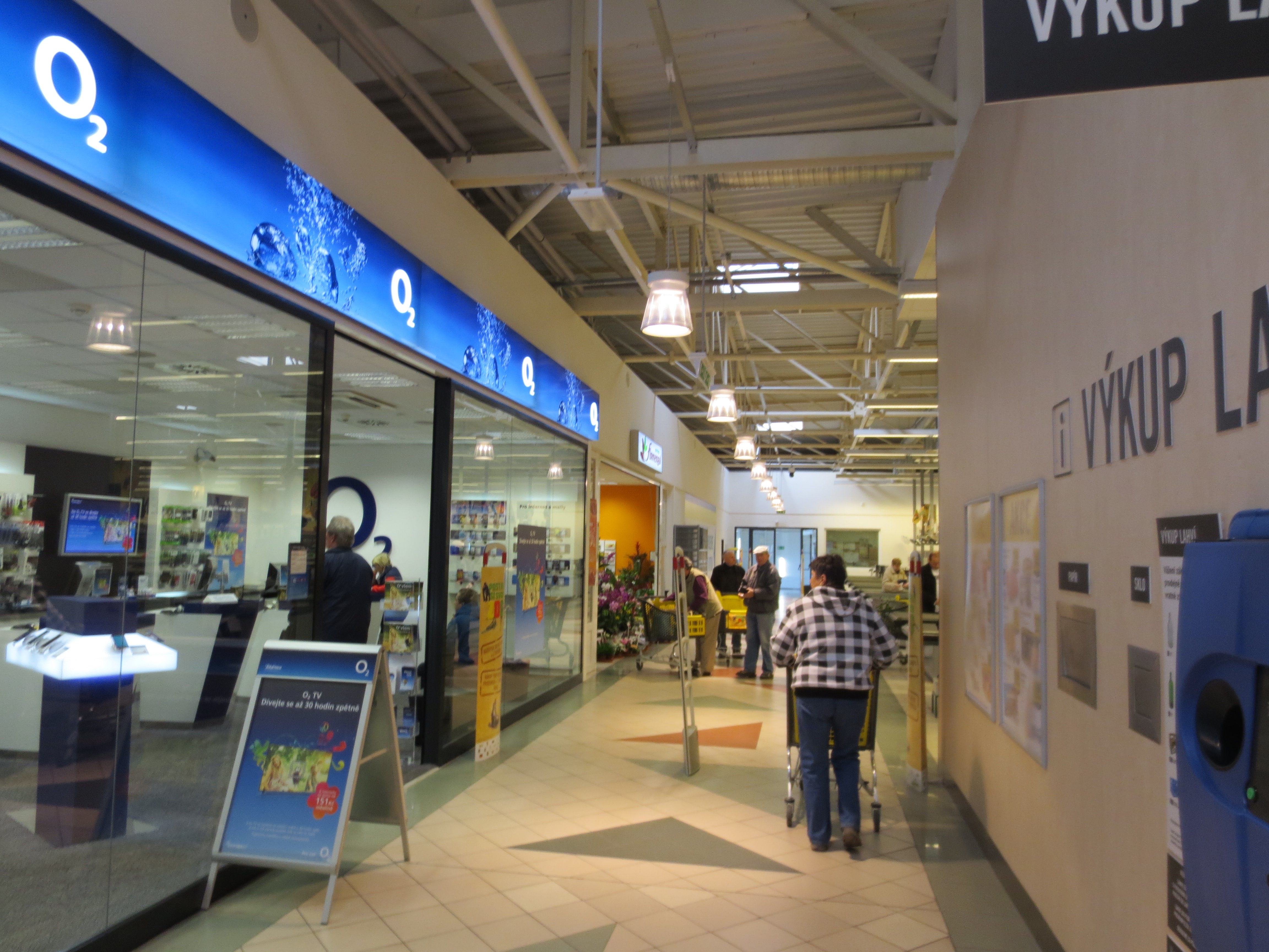 Vnější plocha při vstupu do hypermarketu.