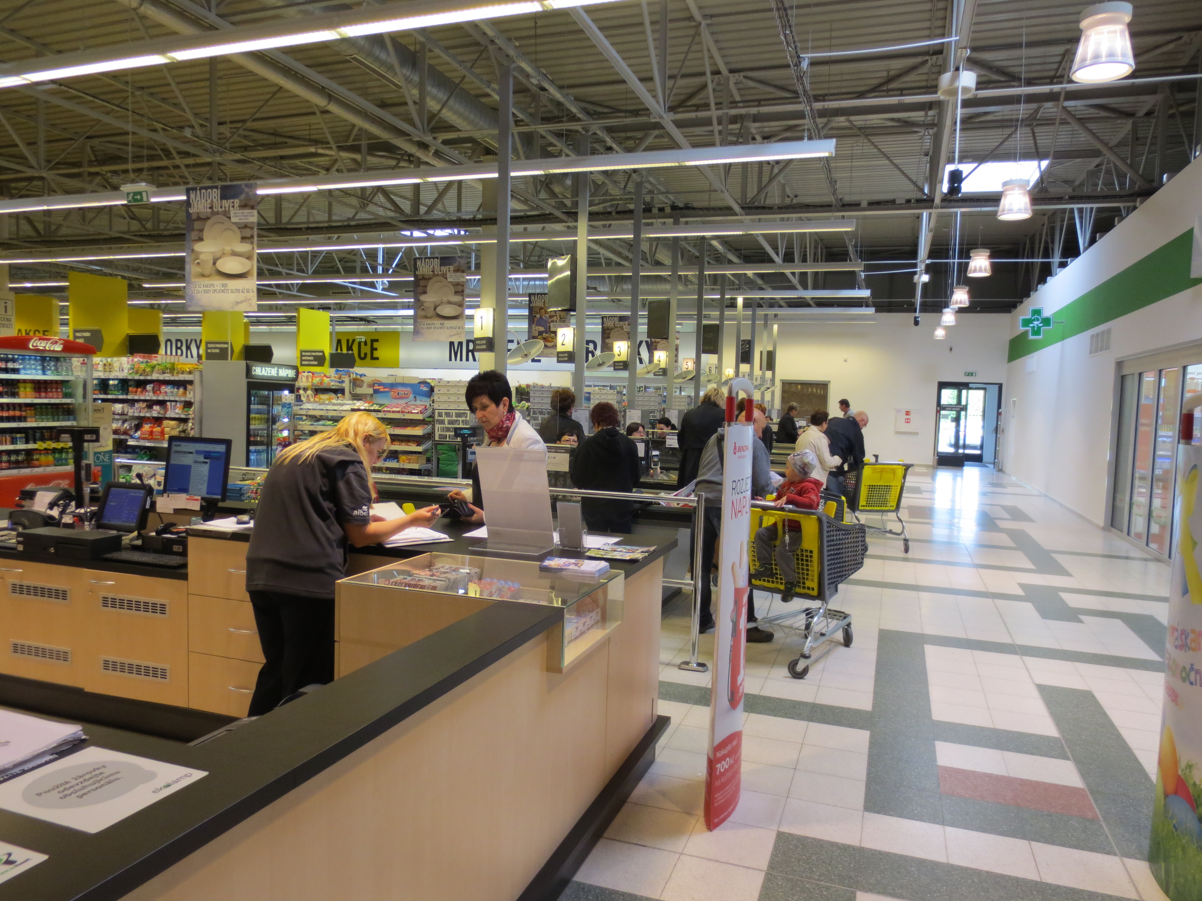Venkovní plocha před vstupem do hypermarketu.